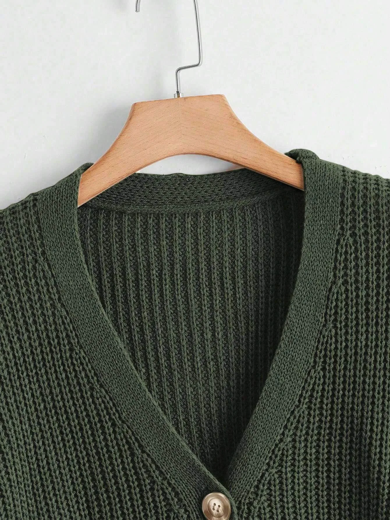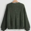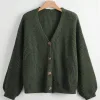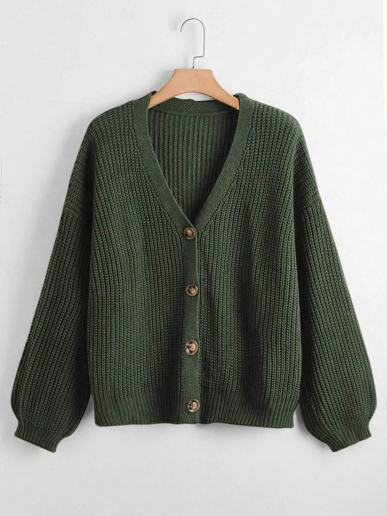 Balloon Sleeves Button Olive Cardigan