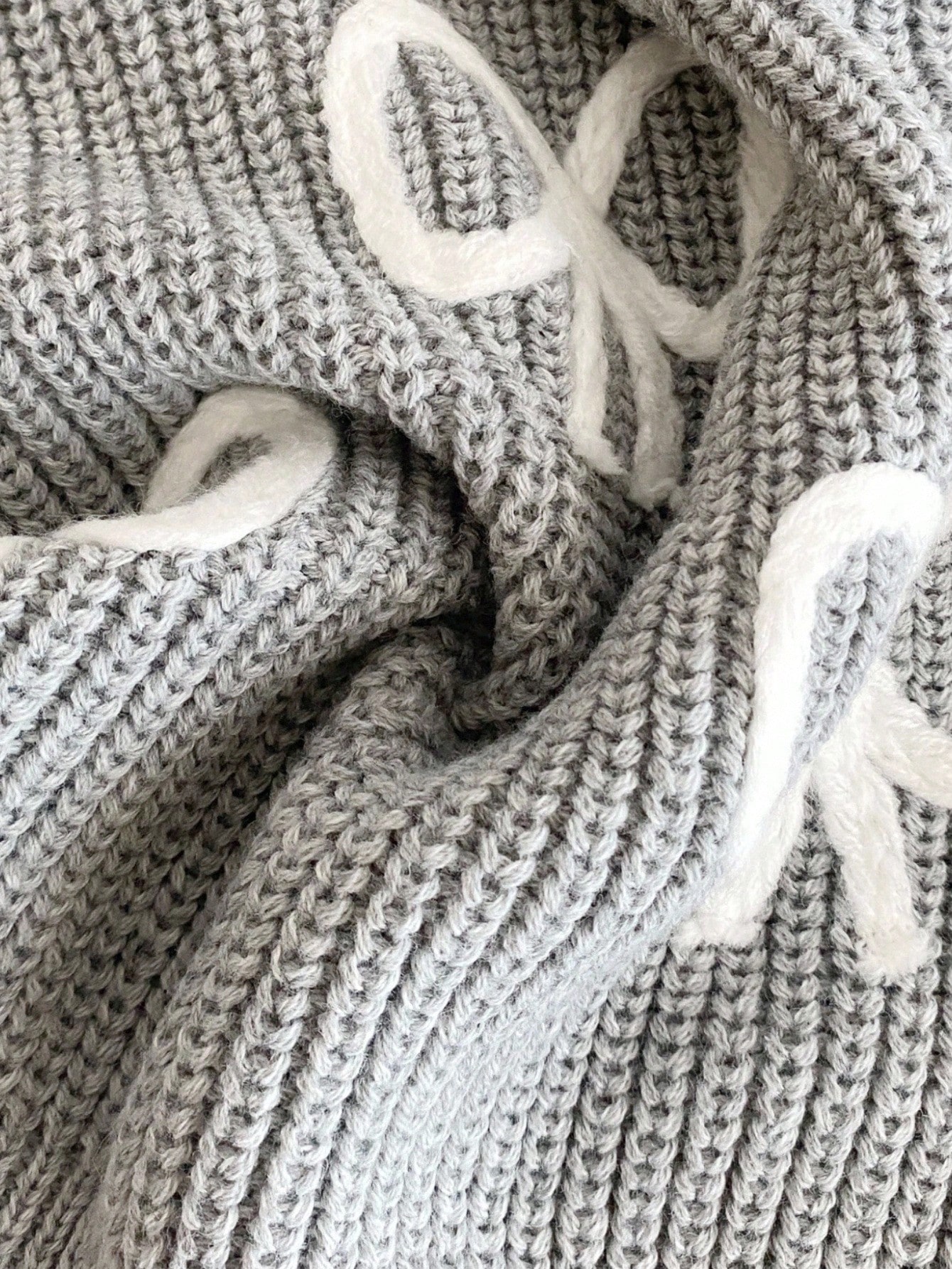 The sweater has long sleeves with a slightly loose fit, adding comfort.