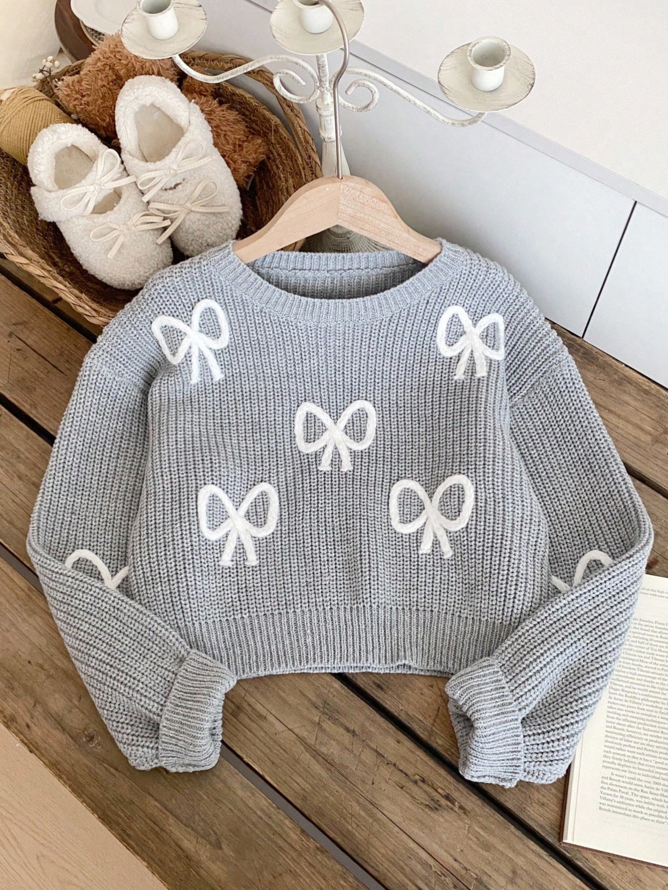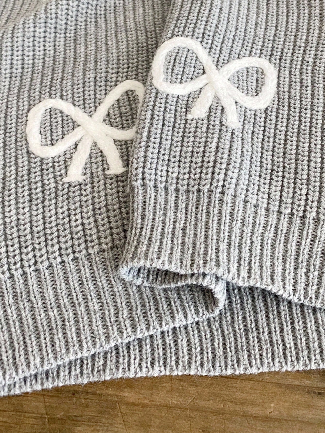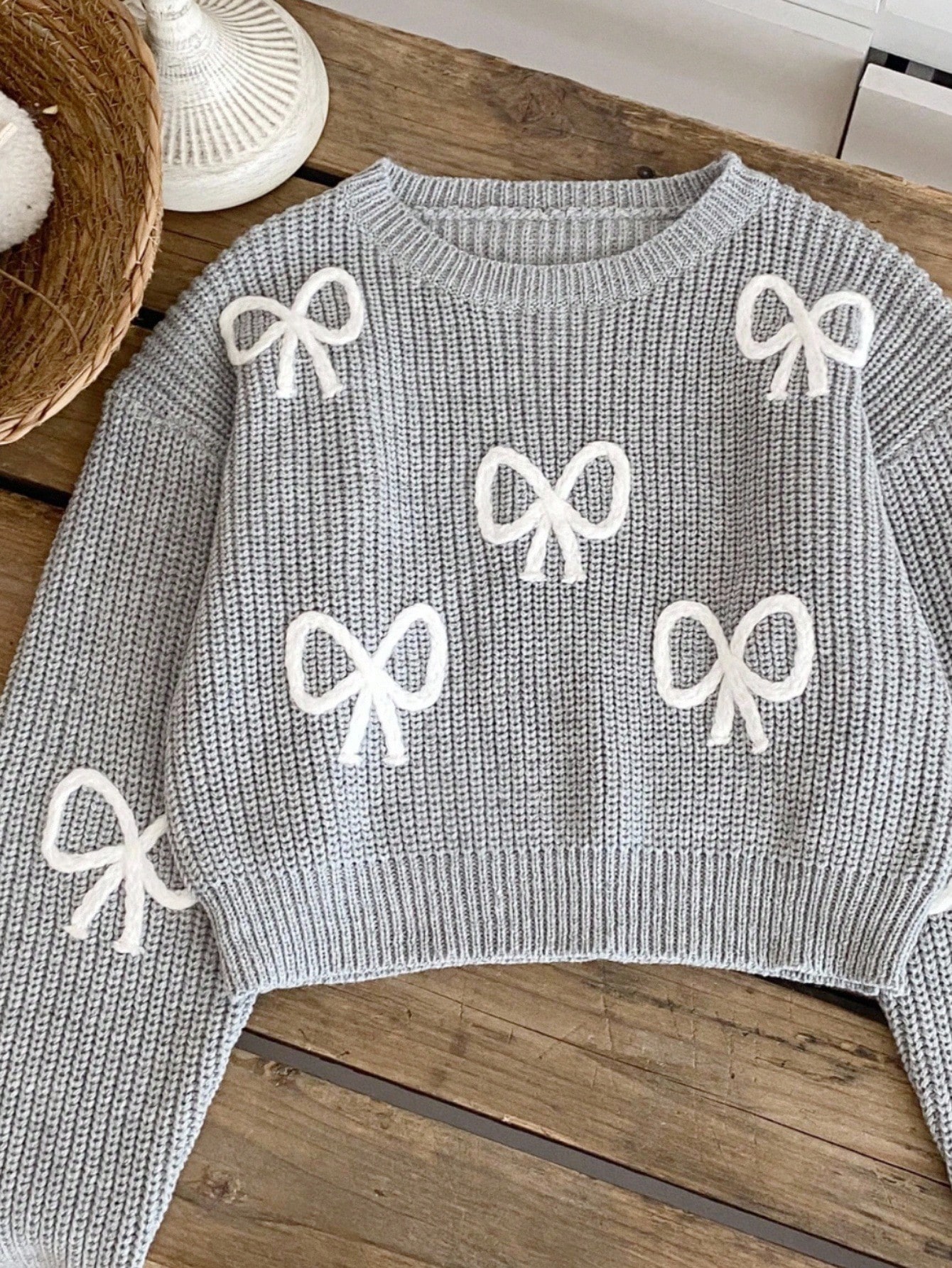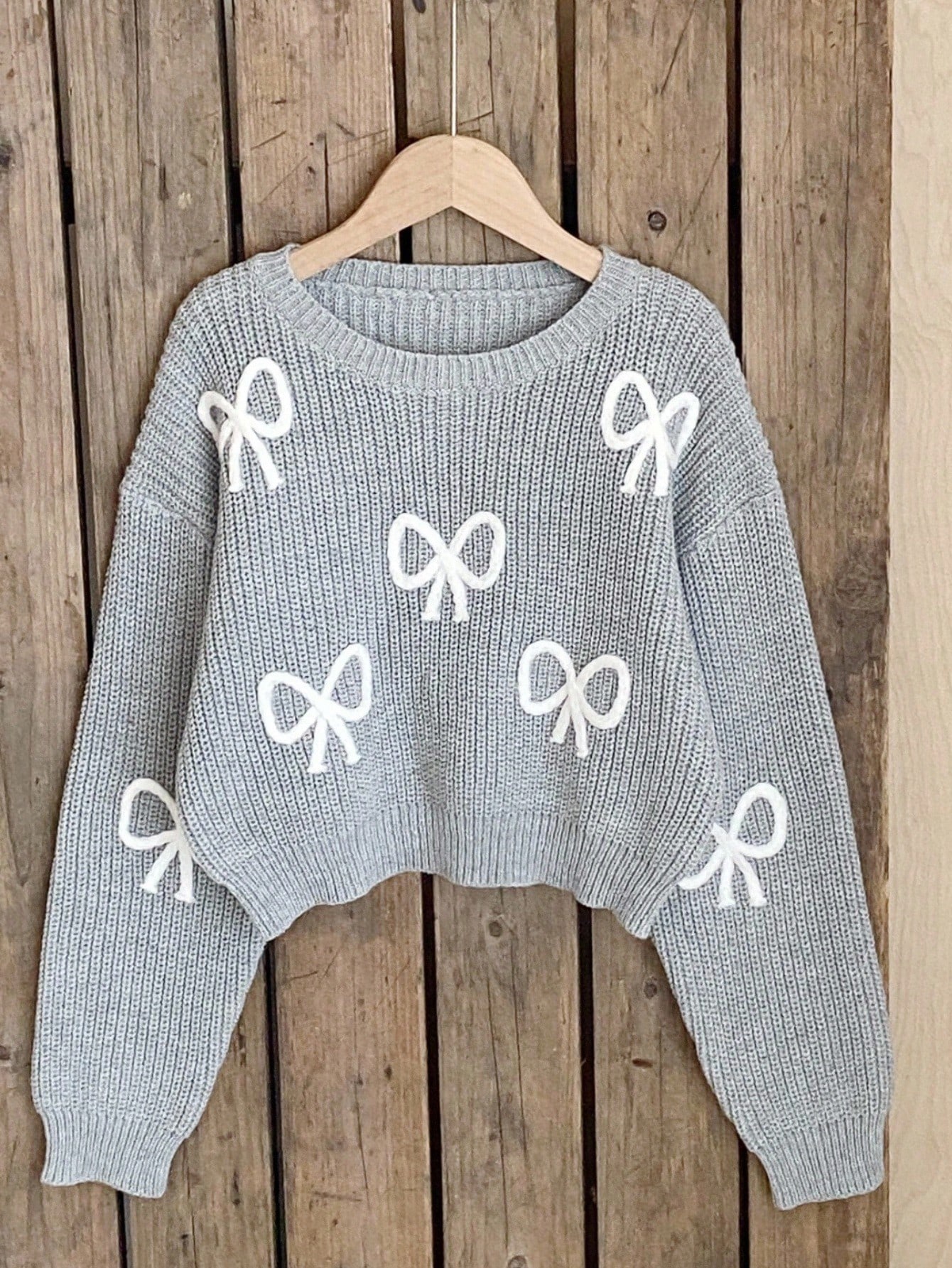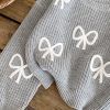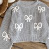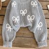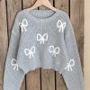 Bow Gray Crop-top Sweater by NurayArts is soft knit crop sweater with delicate white bow appliqués, a cozy fit, and charming details for a cute, comfy everyday look.