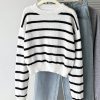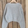 The sweater has a classic round neck, creating a neat and discreet neckline.