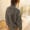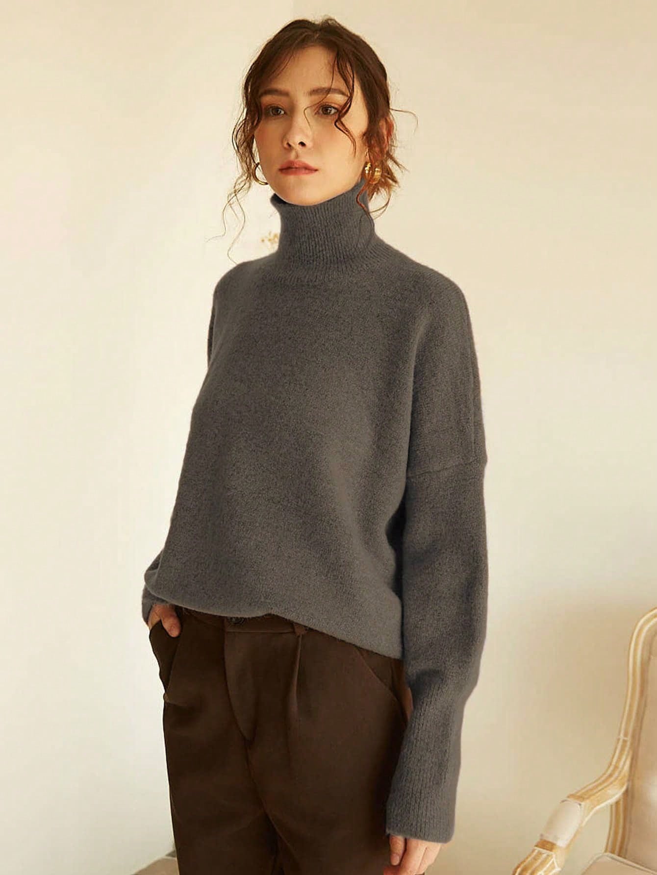 The sweater has a classic turtleneck, creating a neat and discreet neckline.
