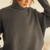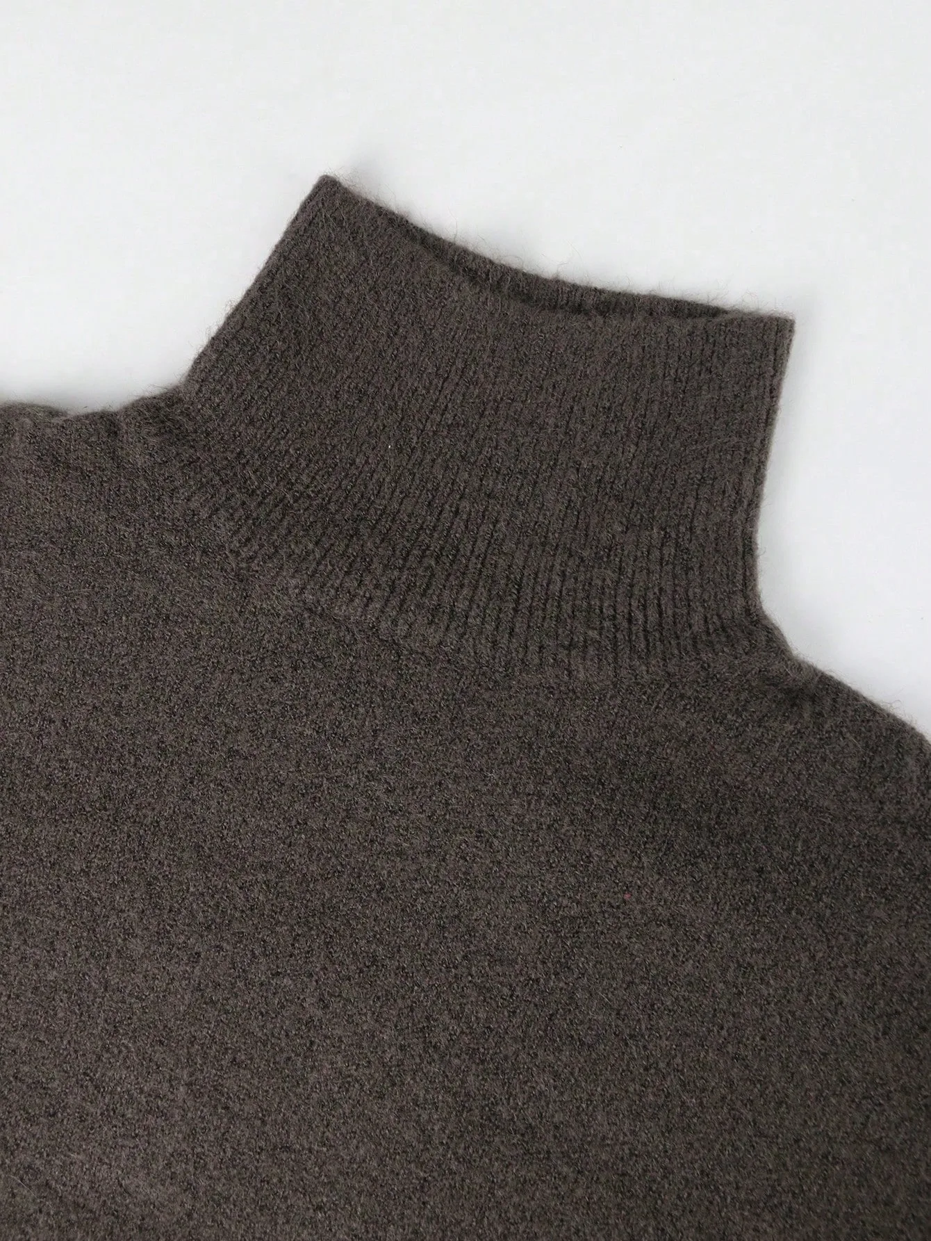 The sweater has a classic turtleneck, creating a neat and discreet neckline.
