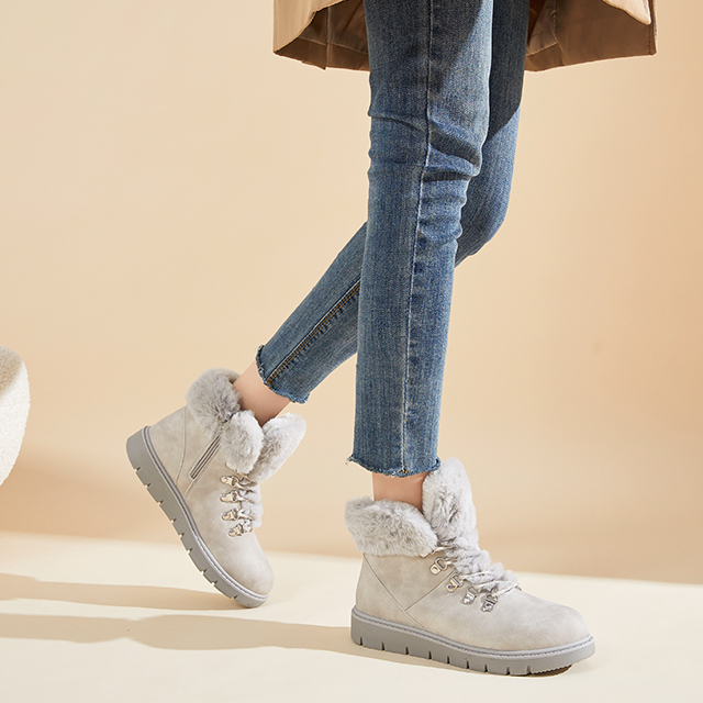 These Grey Fur Leather Ankle Boots combine comfort and functionality in a stylish package, making them a go-to choice for fall and winter.