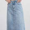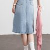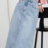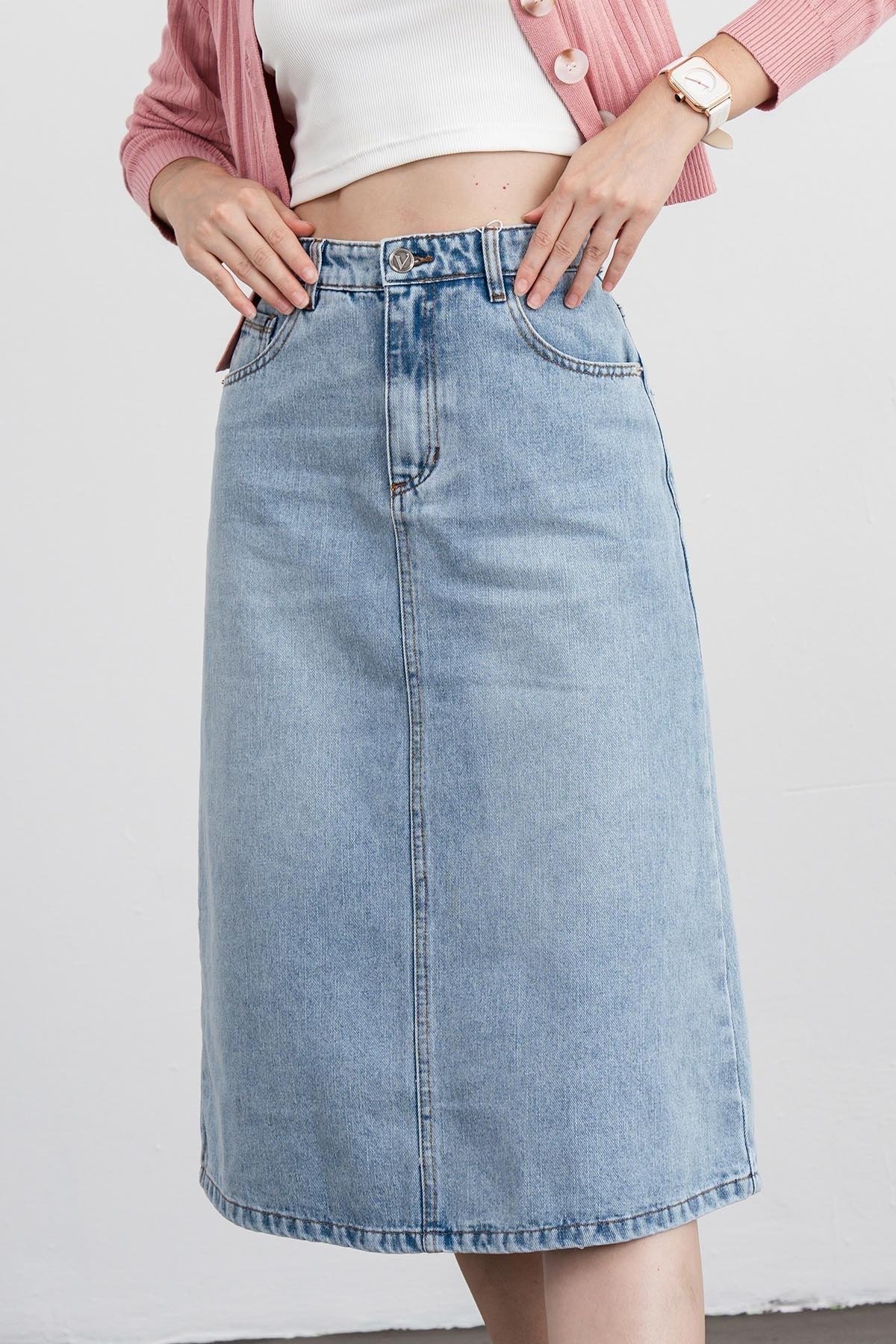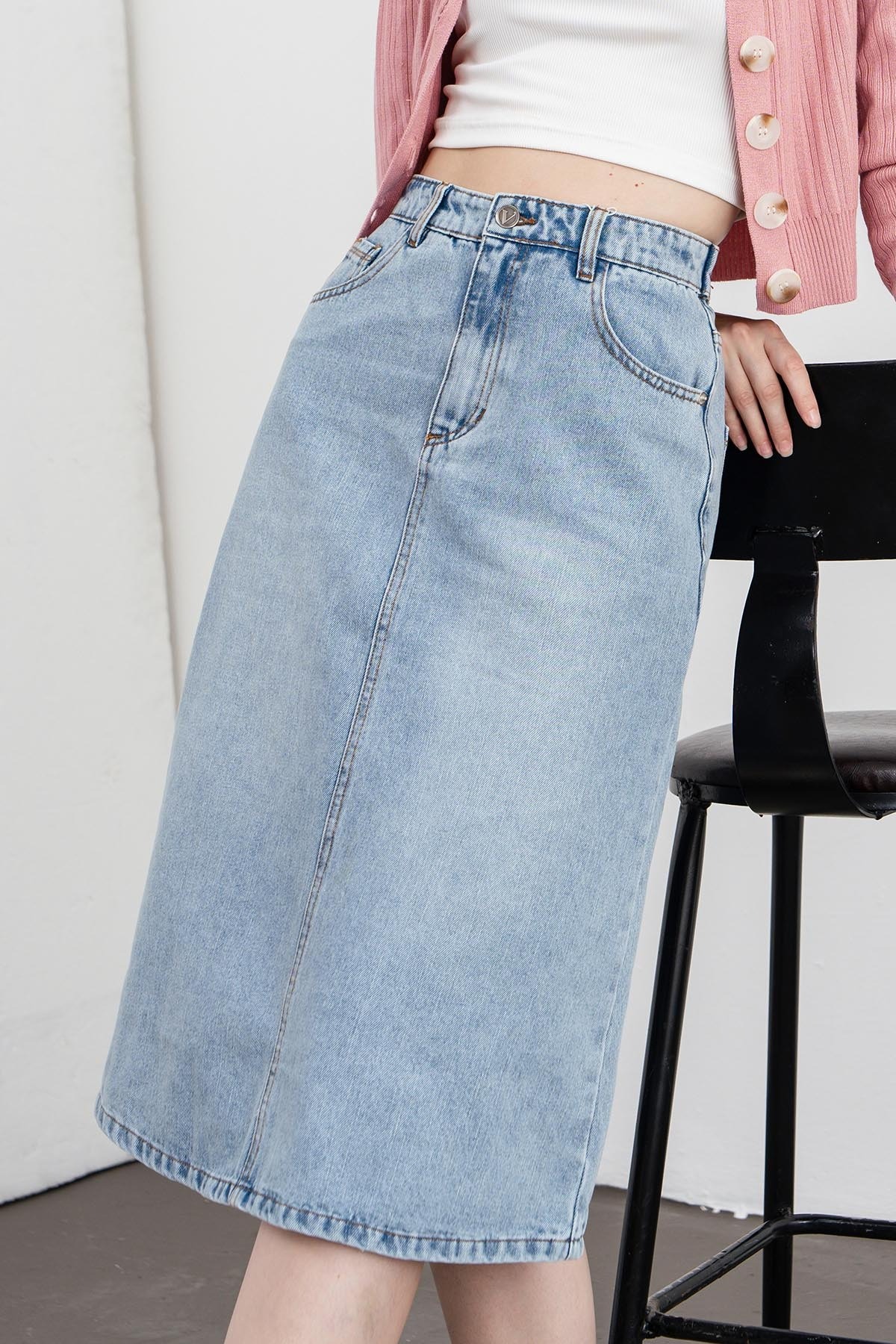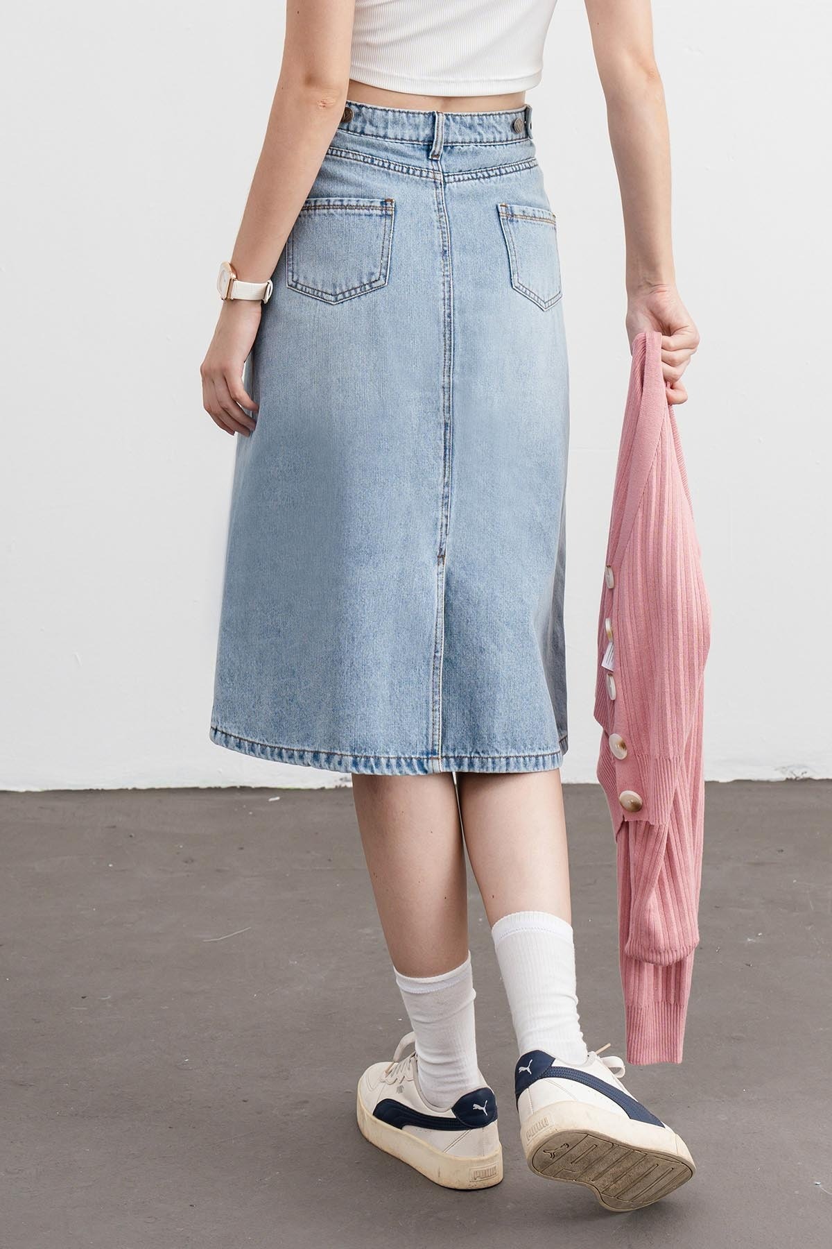 - Closure: Secured with a front button and zip fly for a classic denim skirt finish.