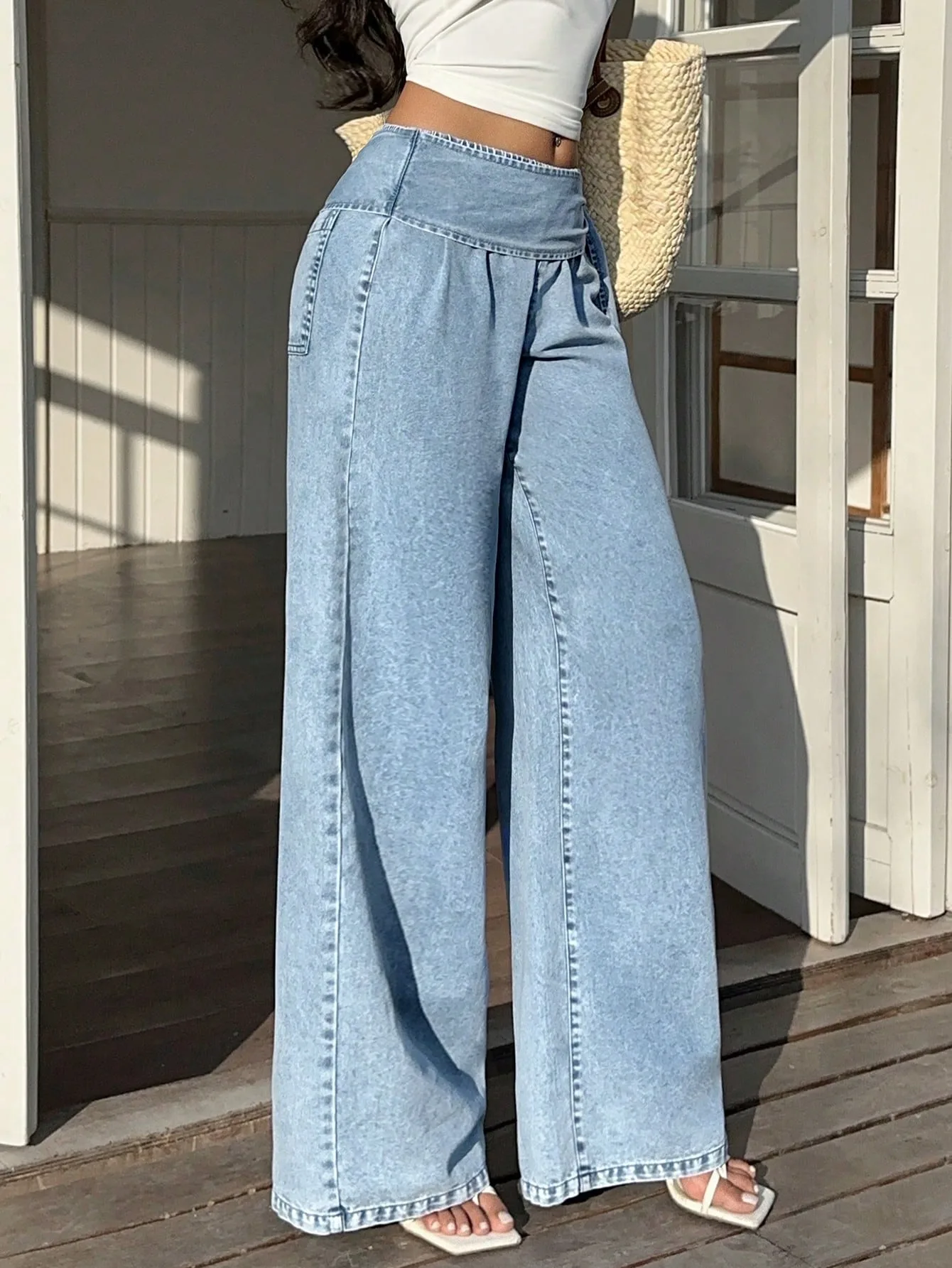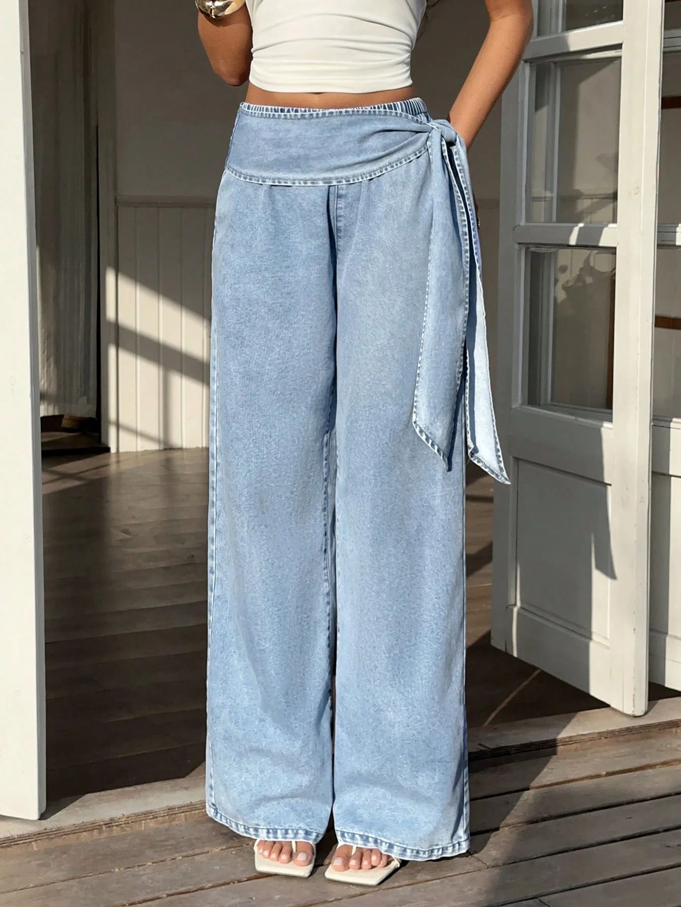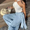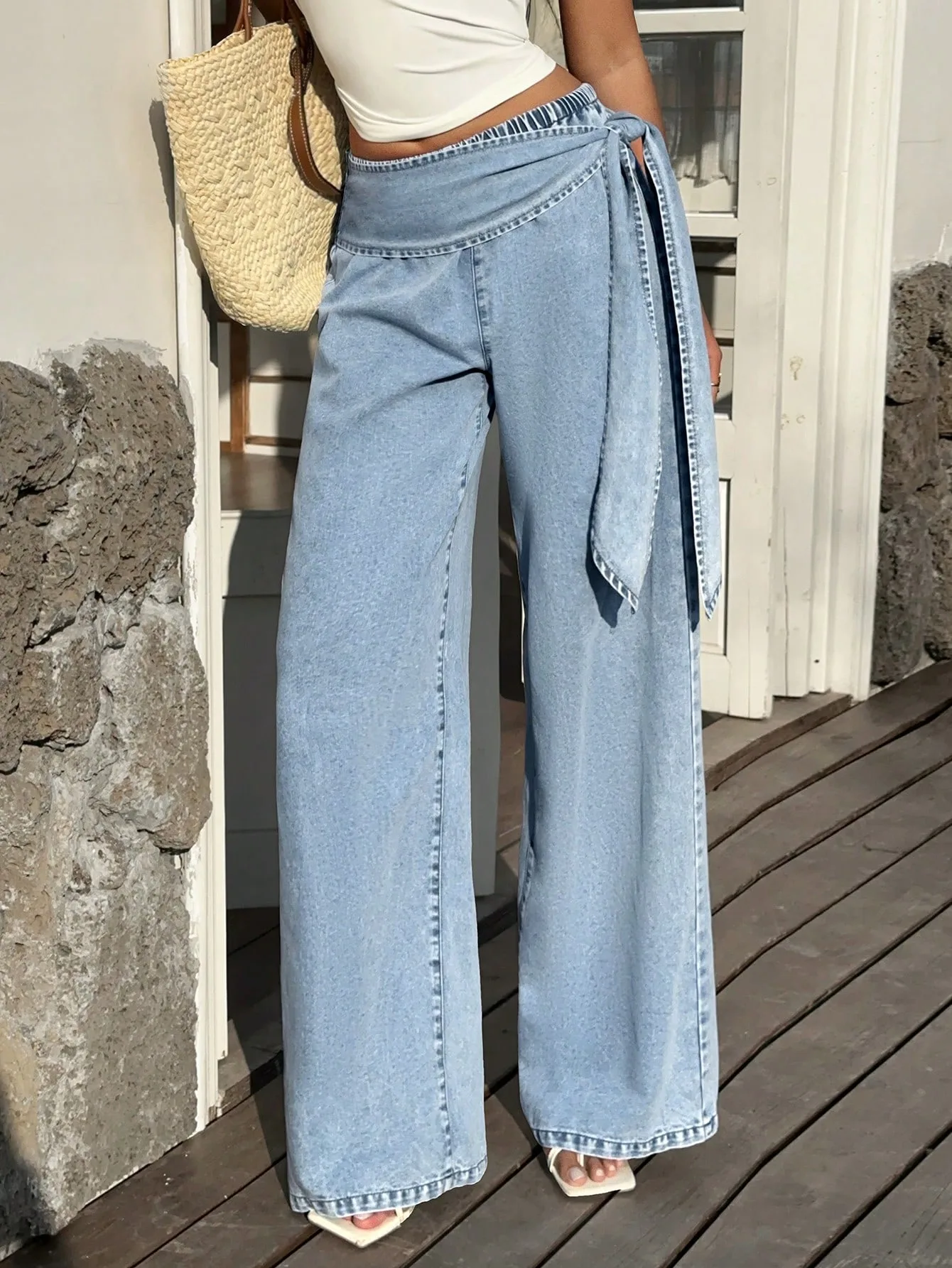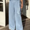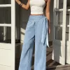 Tie-Belt Wide Leg Jeans