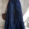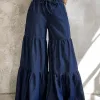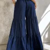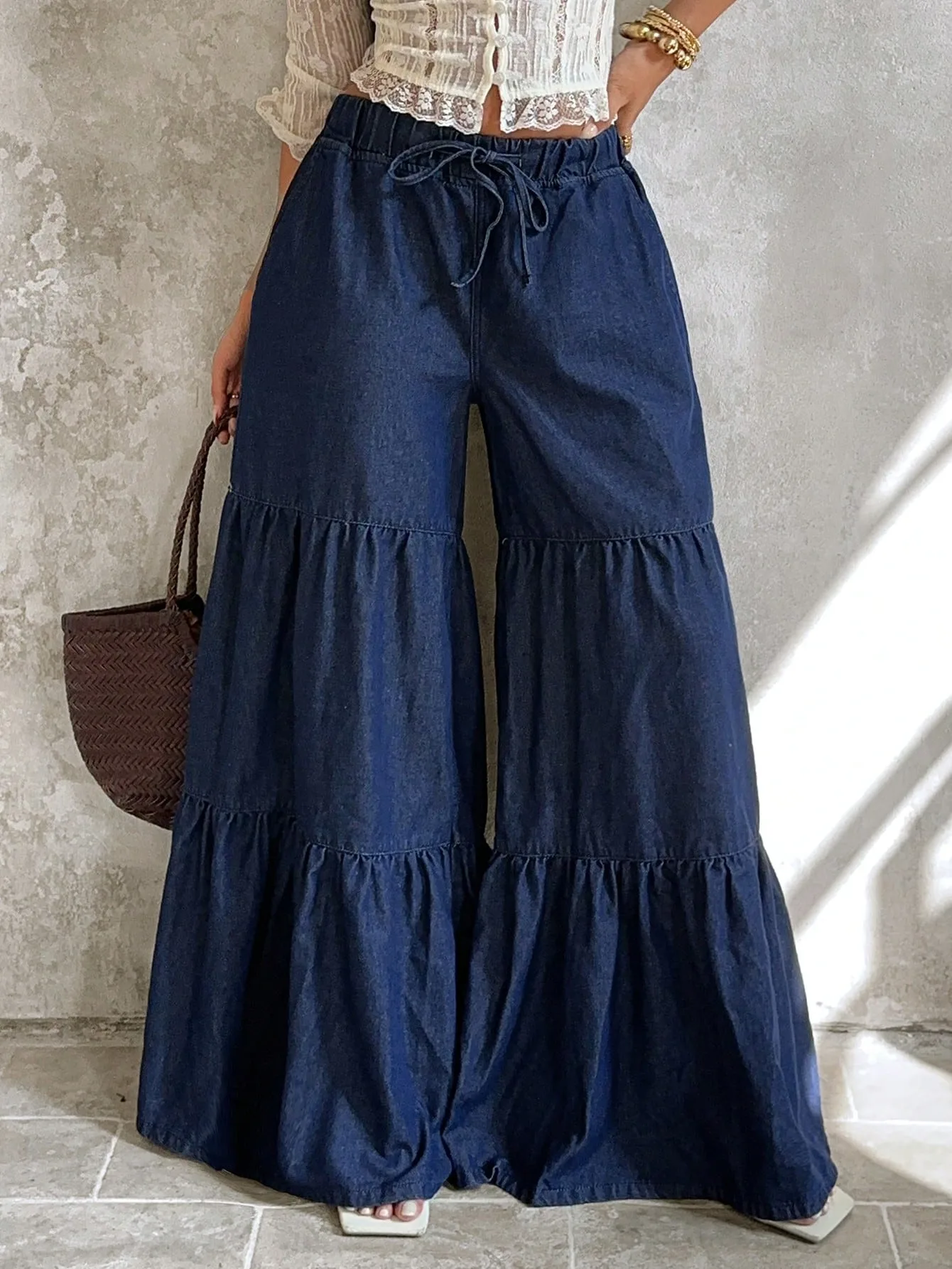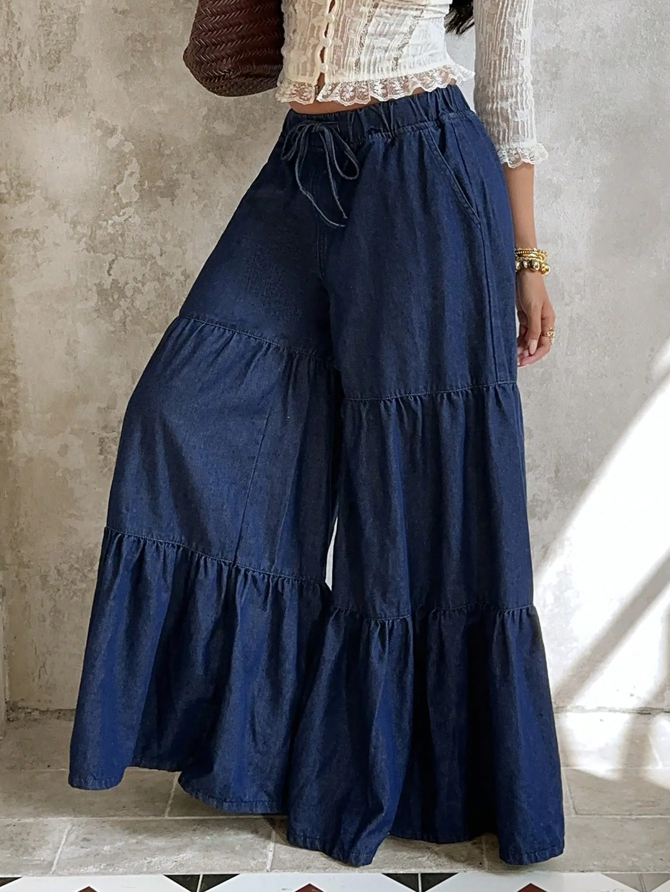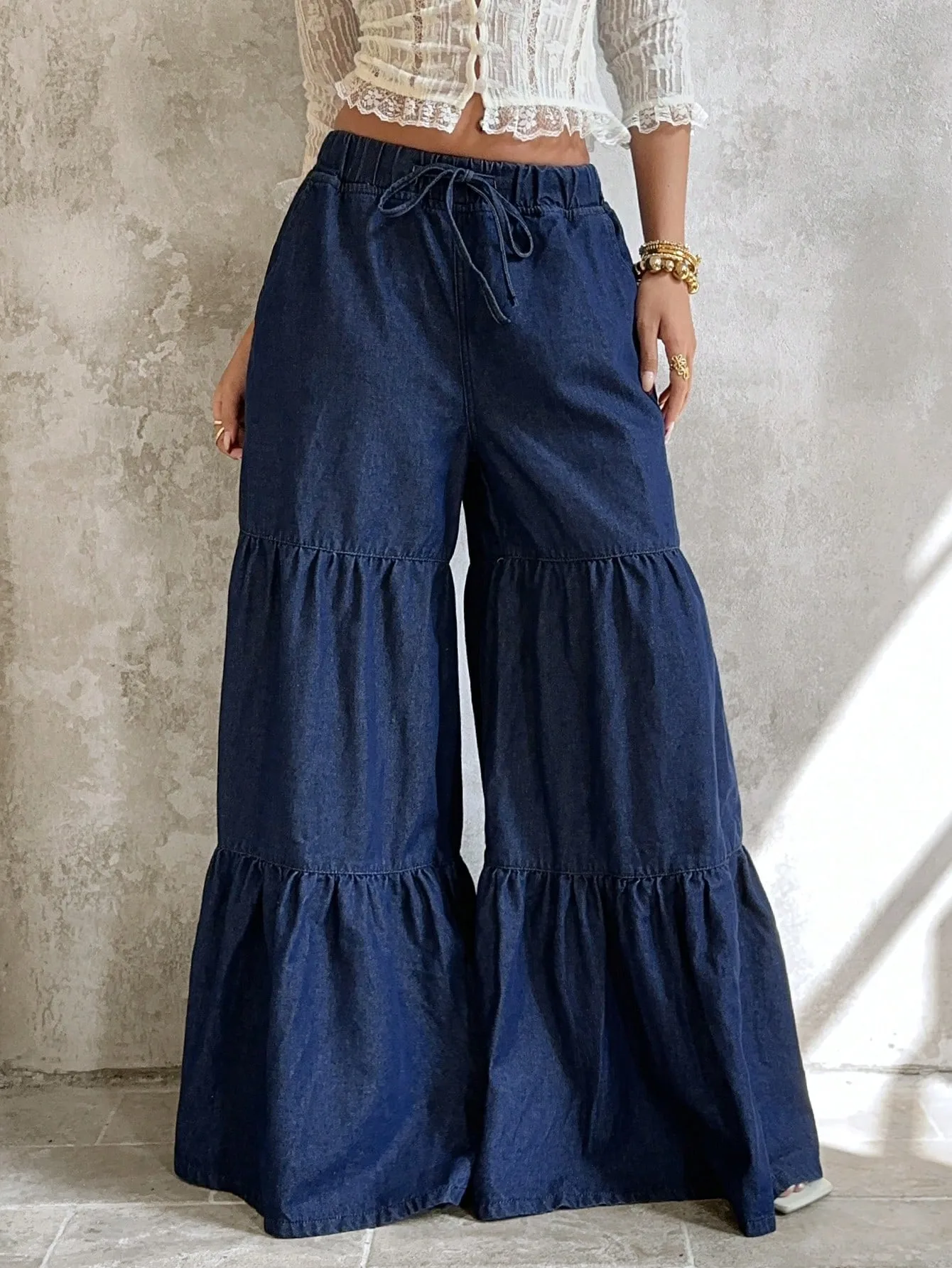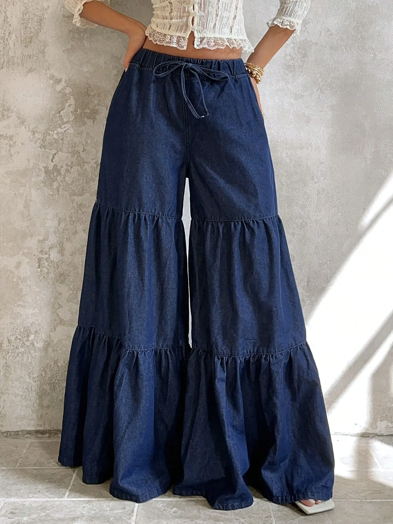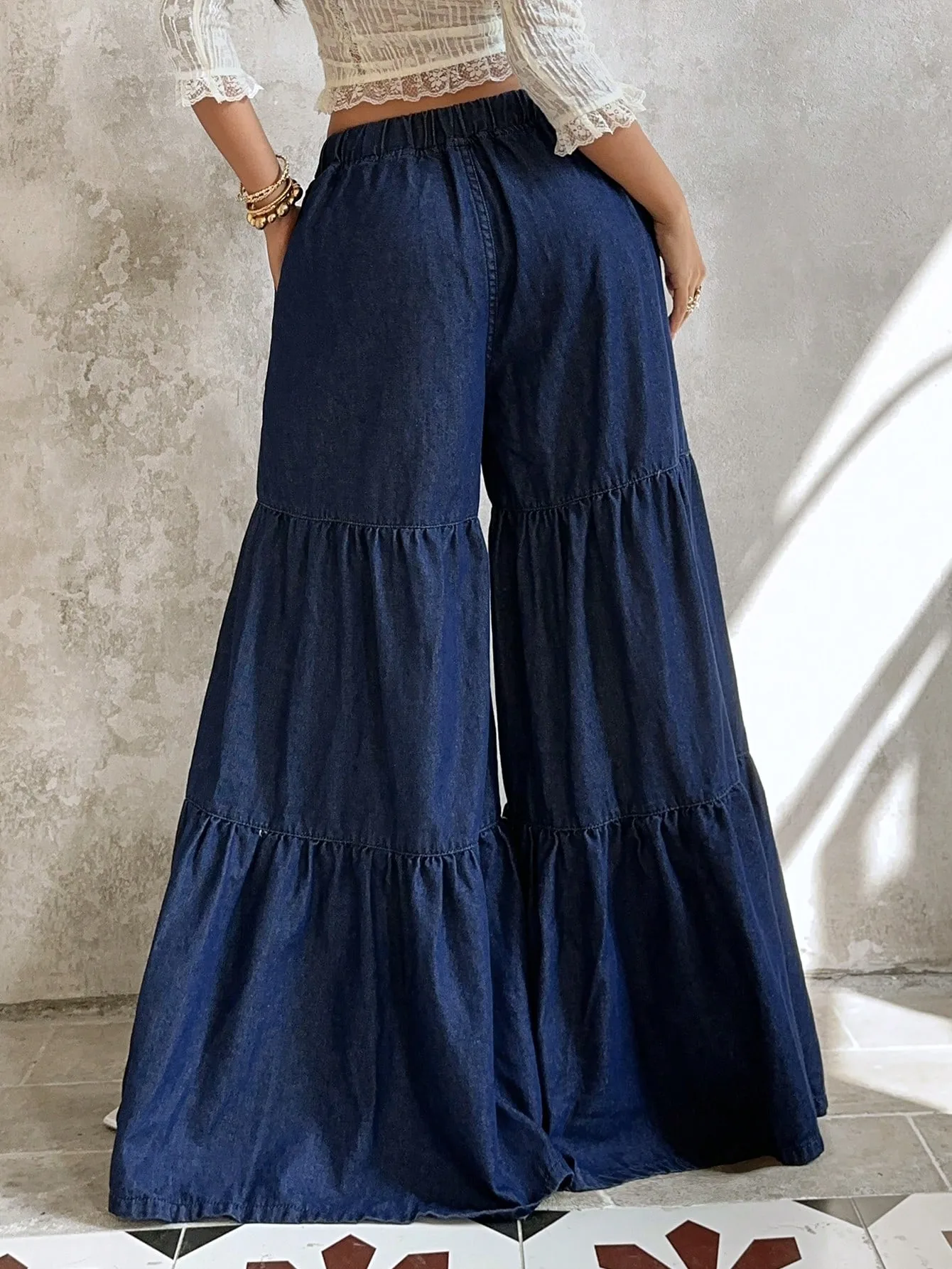 Tiered Wide-Leg Denim Pants
